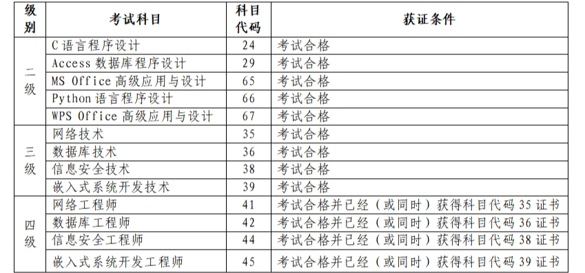 二、考试科目及软件