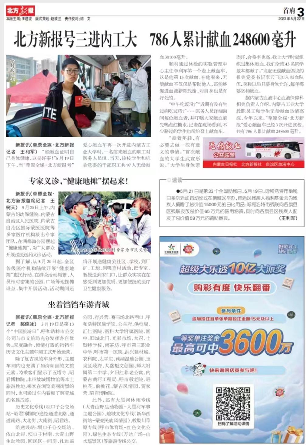 【北方新报】北方新报号三进内工大 786人累计献血248600毫升