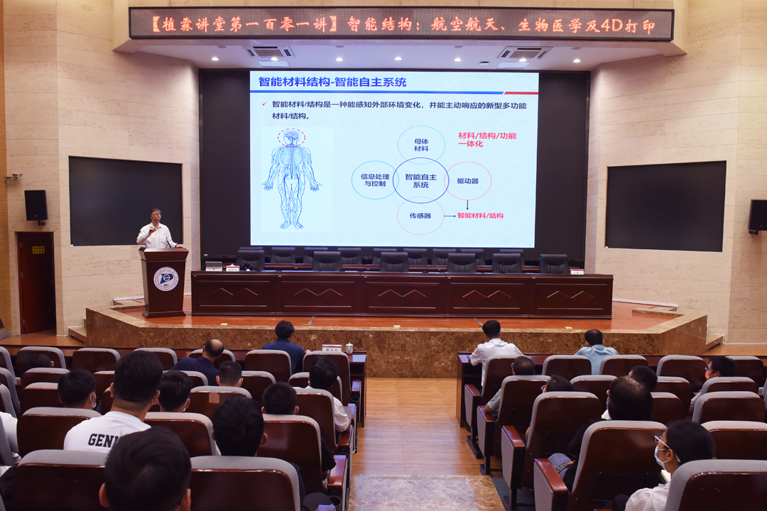 讲座中,冷劲松院士基于材料复合化、结构功能一体化和智能化,分享了智能高分子材料、复合材料的制备、力学分析、结构设计及其应用成果,讲述了形状记忆聚合物材料的设计方法以及在空间展开结构、柔性航天电池板等领域的应用,并系统介绍了形状记忆聚合物4D打印技术的最新研究进展。
