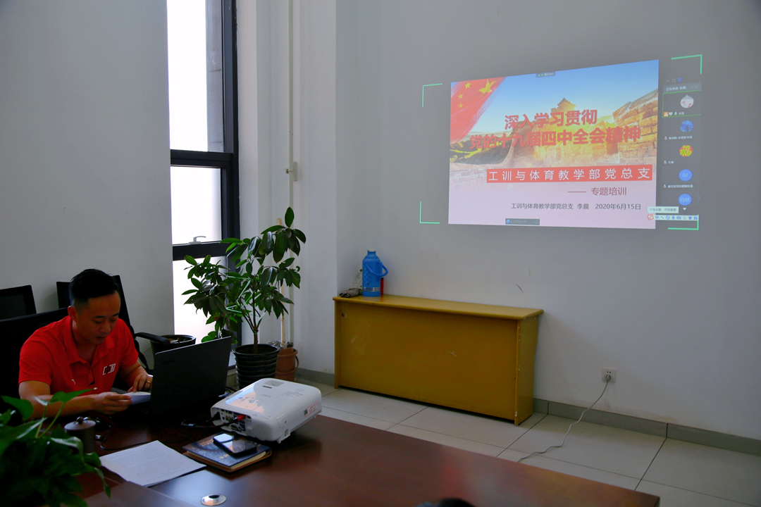 6月15日,工训与体育教学部党总支开展学习贯彻党的十九届四中全会精神专题培训。党总支委员、党支部书记、科级干部、分会主席在新城校区卓越体育馆211会议室进行集中培训,两个教学部全体教师通过腾讯会议在线参加培训。