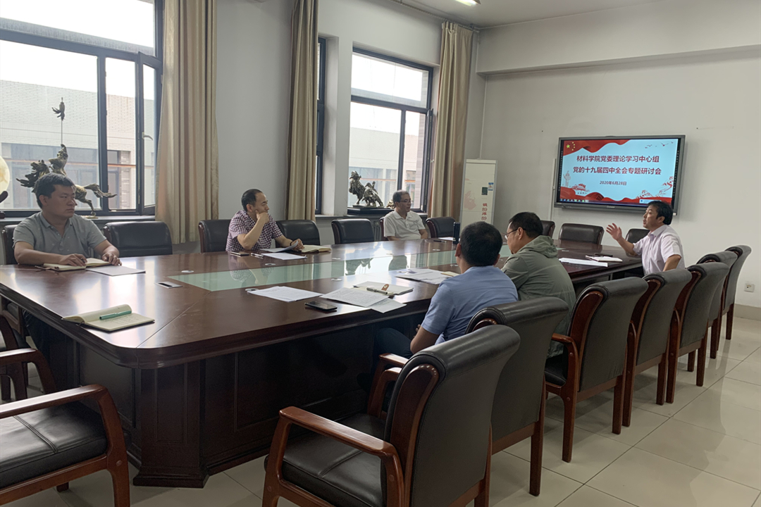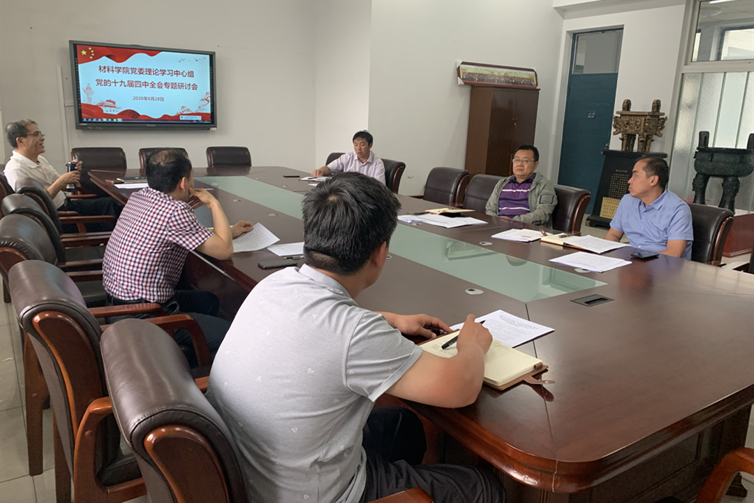 6月28日下午,材料科学与工程学院党委理论学习中心组召开十九届四中全会专题学习研讨会。学院党委书记白朴存主持,全体党委委员参与研讨。