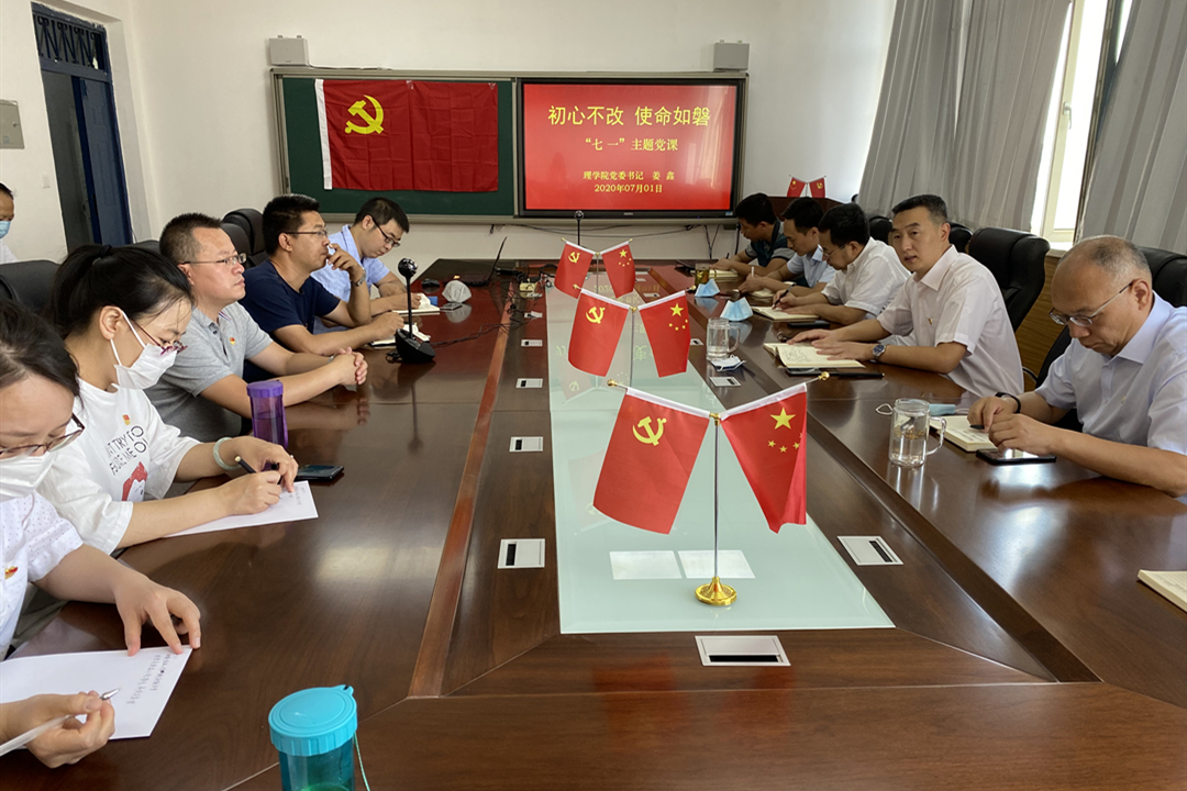 为热烈庆祝中国共产党成立99周年,巩固“不忘初心、牢记使命”主题教育成果,7月1日下午,理学院党委书记姜鑫在新城校区实验楼516会议室带头讲党课,学院领导干部、各教工党支部委员、全体行政管理人员现场参加,全体师生党员170余人通过视频直播形式参加学习。