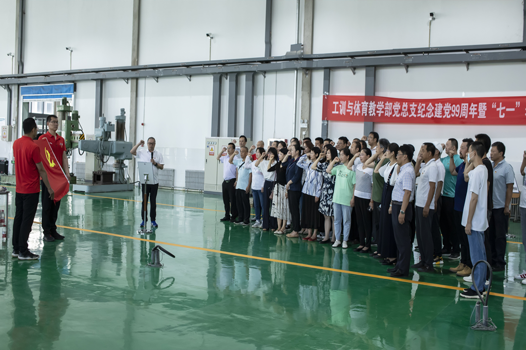 为庆祝中国共产党成立99周年,进一步增强基层党组织的凝聚力和战斗力7月1日,工训与体育教学部党总支在工程训练教学部新厂房召开庆祝中国共产党成立99周年暨“七一”表彰大会,全体教工党员参加。