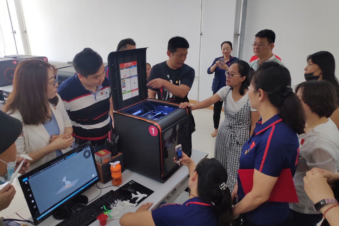 工训机械制造教学中心选派优秀党员代表、普通教师代表,分别为体育教学部党员教师讲解空气锤、普通车床、数控车床、数控铣雕机、激光内雕机、激光打标机、3D打印机等设备的加工原理,并对典型零件“工大小锤”“中国结”“鬼工球”“3D麋鹿”等进行加工演示。工训教师严谨专注、一丝不苟的讲解和演示,深深吸引了大家认真聆听。部分体育老师还不时与演示教师交流探讨,了解实践原理及其特性,有的教师则饶有兴致拿起典型作品零件,认真研究其中的奥妙。
