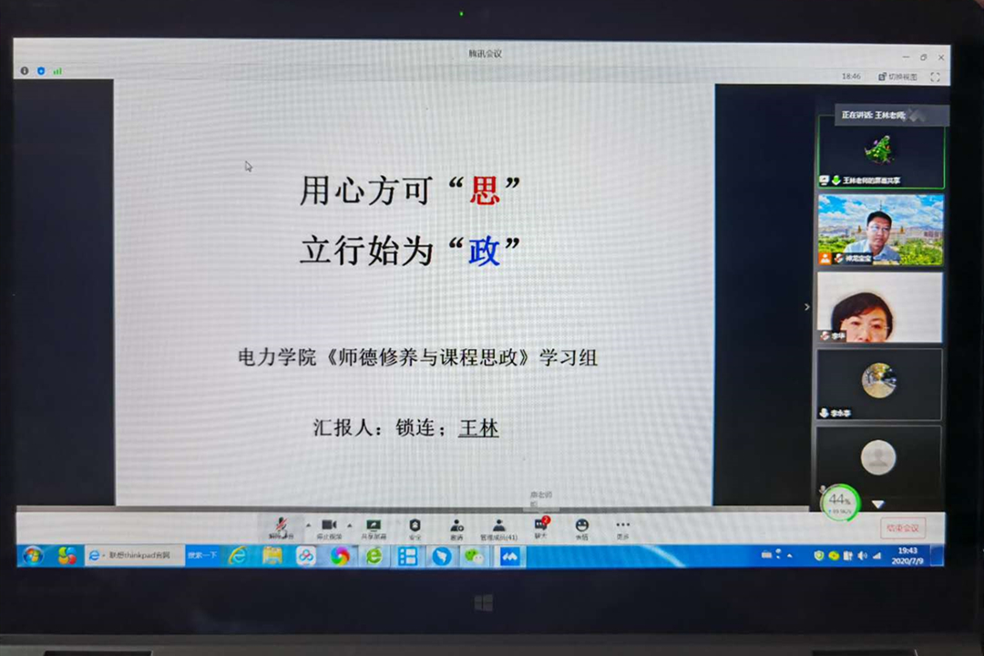 7月8日晚,电力学院通过腾讯会议举办课程思政分享会,邀请自动化系王林教授为大家作经验分享。会议由副院长张计科主持,学院领导和全体专任教师参加。