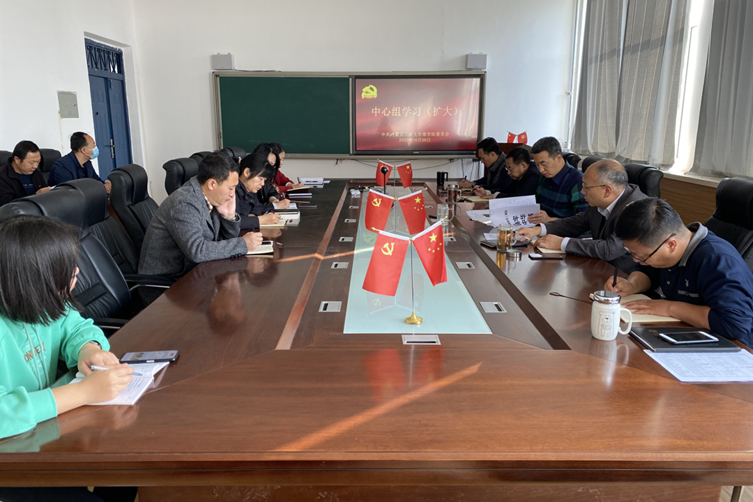 10月8日上午,理学院党委书记姜鑫在新城校区实验楼516会议室主持召开学院党委理论学习中心组(扩大)学习会。学院党委委员、教工党支部书记、全体行政教工参加会议。