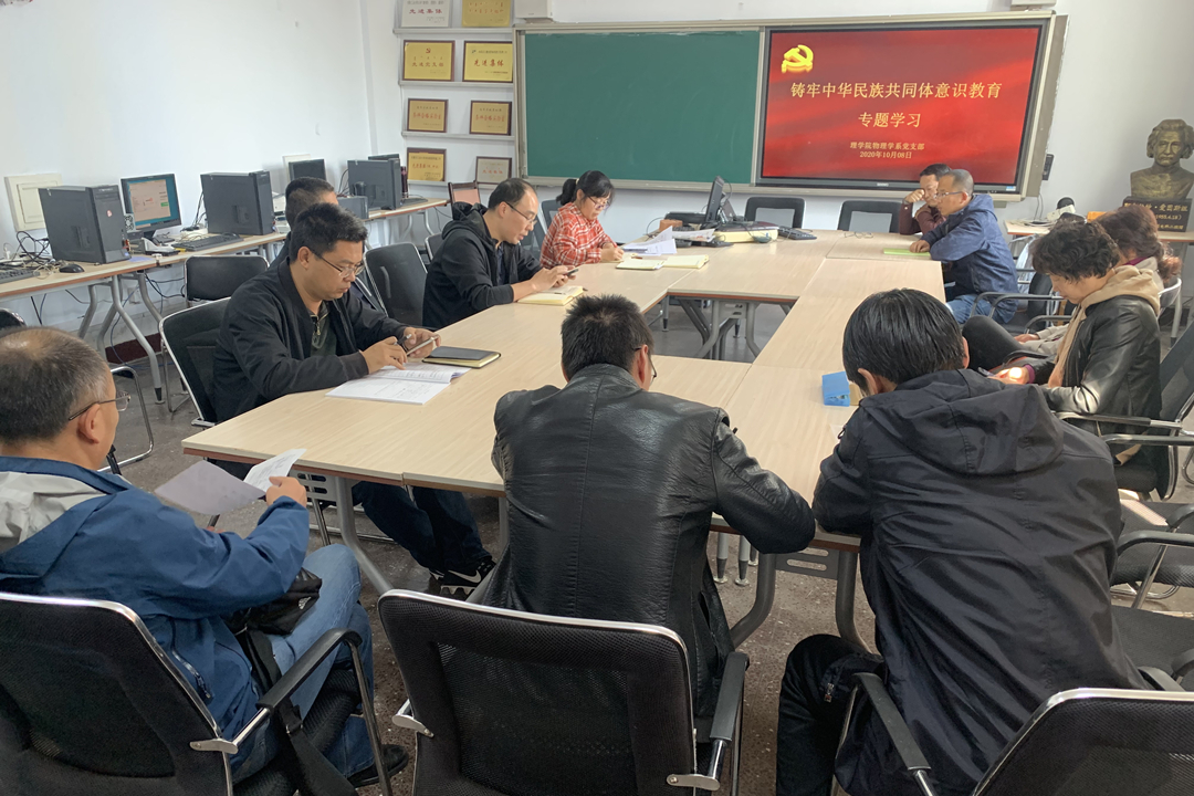 为深入学习贯彻习近平总书记关于民族工作的重要论述,进一步贯彻落实习近平总书记在全国民族团结进步表彰大会上的讲话精神等重要内容。10月8日上午,理学院党委书记姜鑫在新城校区实验楼516会议室主持召开学院党委理论学习中心组(扩大)“铸牢中华民族共同体意识”专题学习会。10月8日下午,学院党委副书记、副院长李强面向2020级全体新生作“铸牢中华民族共同体意识”专题讲座。10月9日至11日,学院党委所属八个党支部分别组织“铸牢中华民族共同体意识”专题学习会、党日活动等形式多样的学习活动。