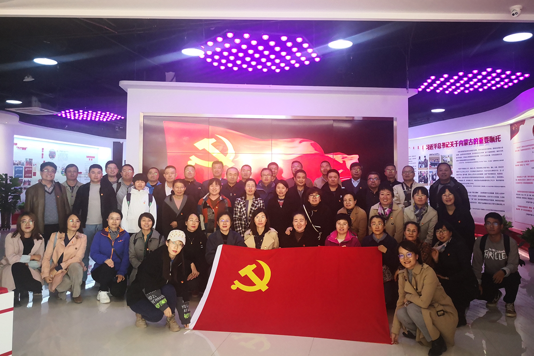 教师们跟随讲解员,共同参观了宣传展示基地、党性修养基地、廉政文化基地、学习体验基地等多个展区鲜活的党建资源;学习了解了乌兰夫、多松年、奎璧等老一辈无产阶级革命家投身于民族地区乃至全中国的解放和建设事业的艰辛历程以及中国共产党和自治区的发展历史;视频观看了习近平总书记关于内蒙古的重要嘱托。最后,全体党员在鲜红的党旗下重温入党誓词。