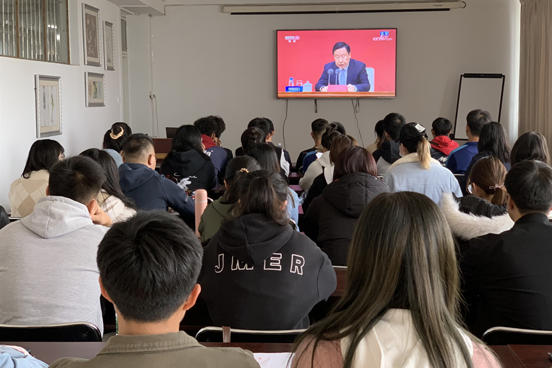 10月30日上午10时,轻工与纺织学院组织师生党员在电力大楼0730会议室观看党的十九届五中全会精神新闻发布会直播。