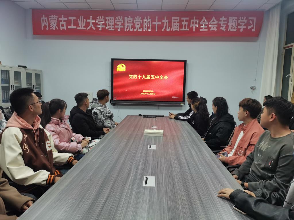 10月29日晚,理学院组织青年学生干部集体学习了十九届五中全会的会议精神。同学们认为,党的十九届五中全会研究了关于制定国民经济和社会发展的第十四个五年规划和二零三五年远景目标的建议。作为新时代青年,应在国家“大规划”的指导下制定自己的“小规划”,立足自身所学,练就过硬本领,投身强国伟业。到祖国最需要的地方去,将青春融入祖国的山河,为实现中华民族伟大复兴的中国梦贡献青春力量。