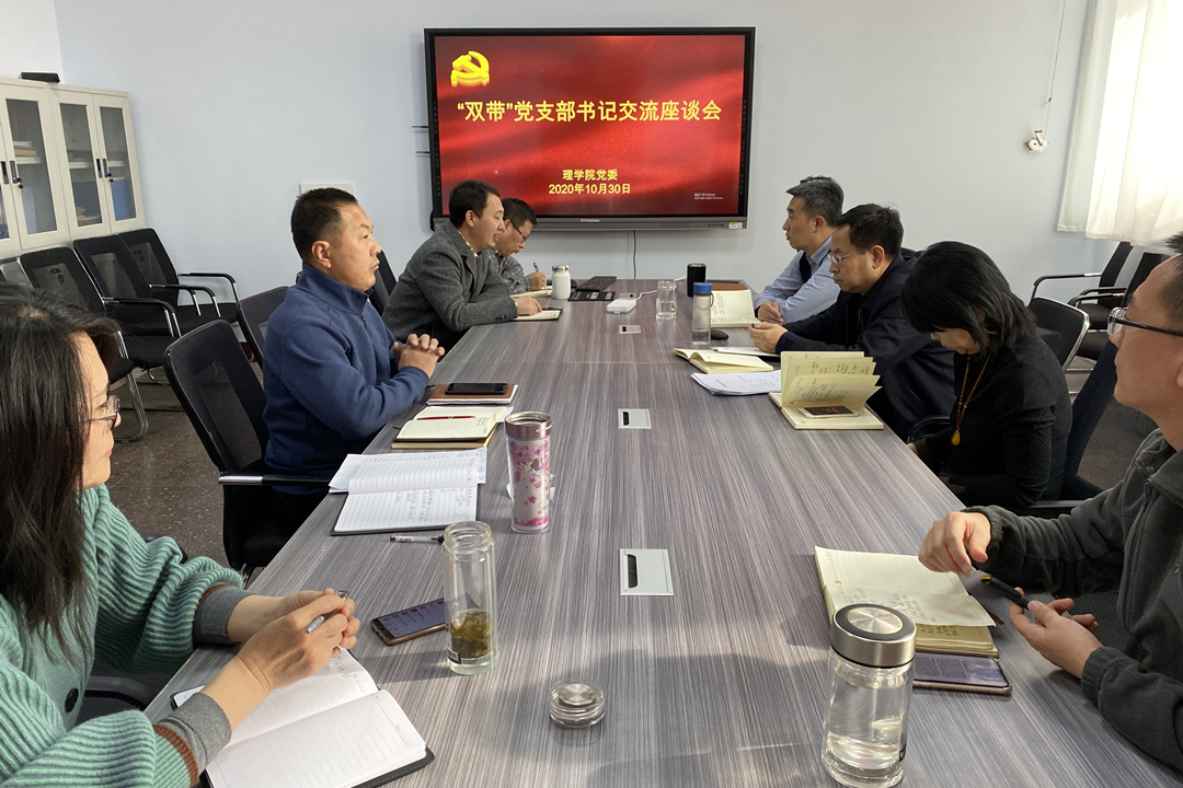10月30日上午,理学院党委举办“双带头人”党支部书记交流座谈会。学院全体党政领导、党委委员、各支部书记、行政科室负责人参加。会议由学院党委书记姜鑫主持。
