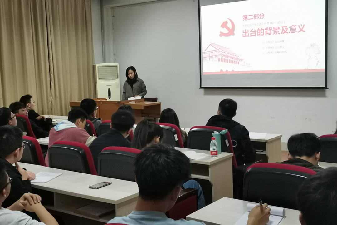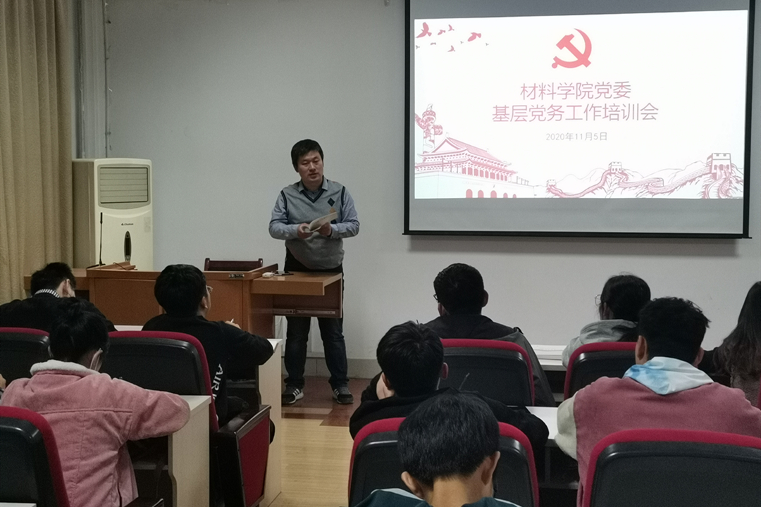 为加强基层党支部建设,提升党支部的组织力,发挥党支部的战斗堡垒作用,11月5日晚,材料科学与工程学院党委在新城校区工程技术楼404室开展基层党务工作专题培训会。全体党支部委员、党务工作办公室成员参训。