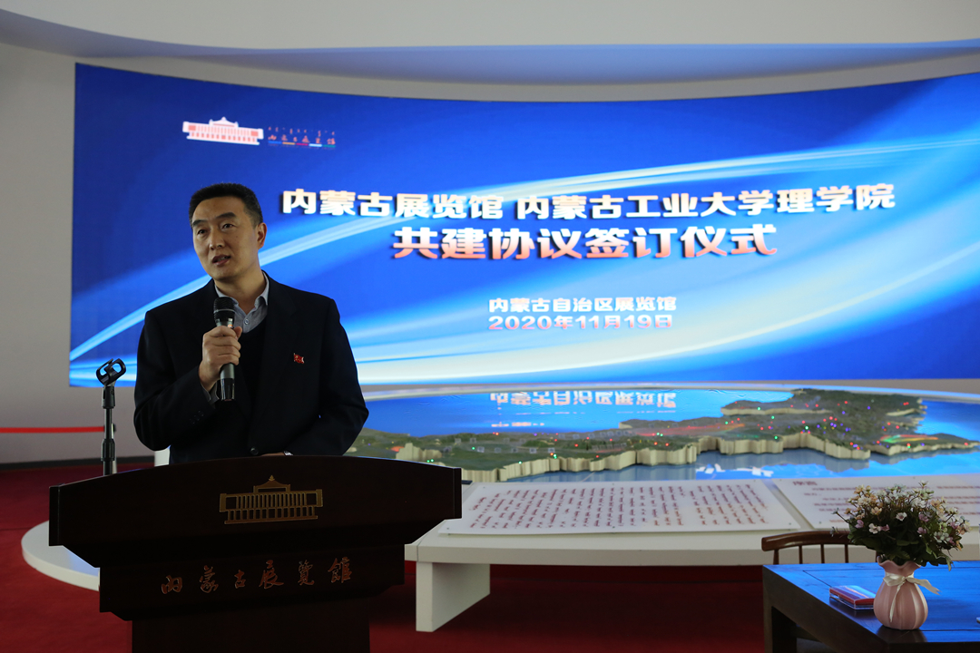 11月19日上午,理学院党委与内蒙古展览馆党总支党建共建协议签订仪式在内蒙古展览馆举行。内蒙古展览馆党总支书记王安娟,馆长王世英,展览馆各党支部党员,理学院党委书记姜鑫,院长庞晶,副书记、副院长李强,副院长刘全龙,学院行政党支部全体党员70余人参加仪式。