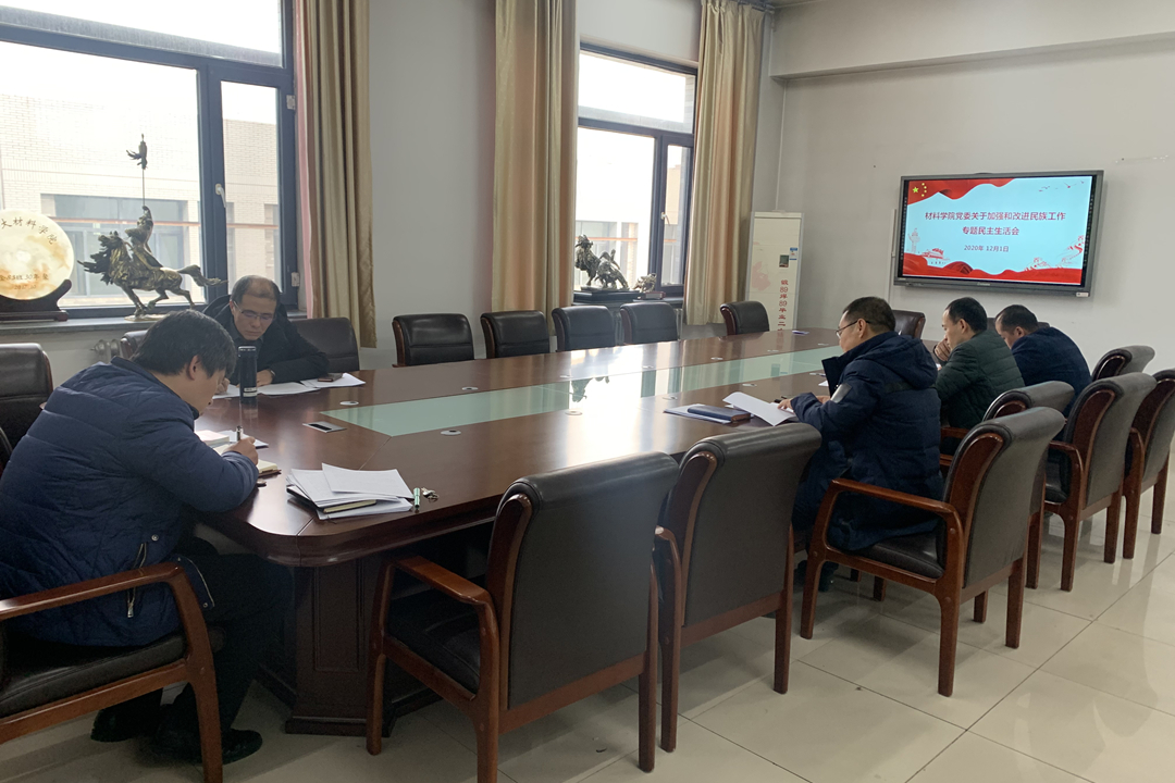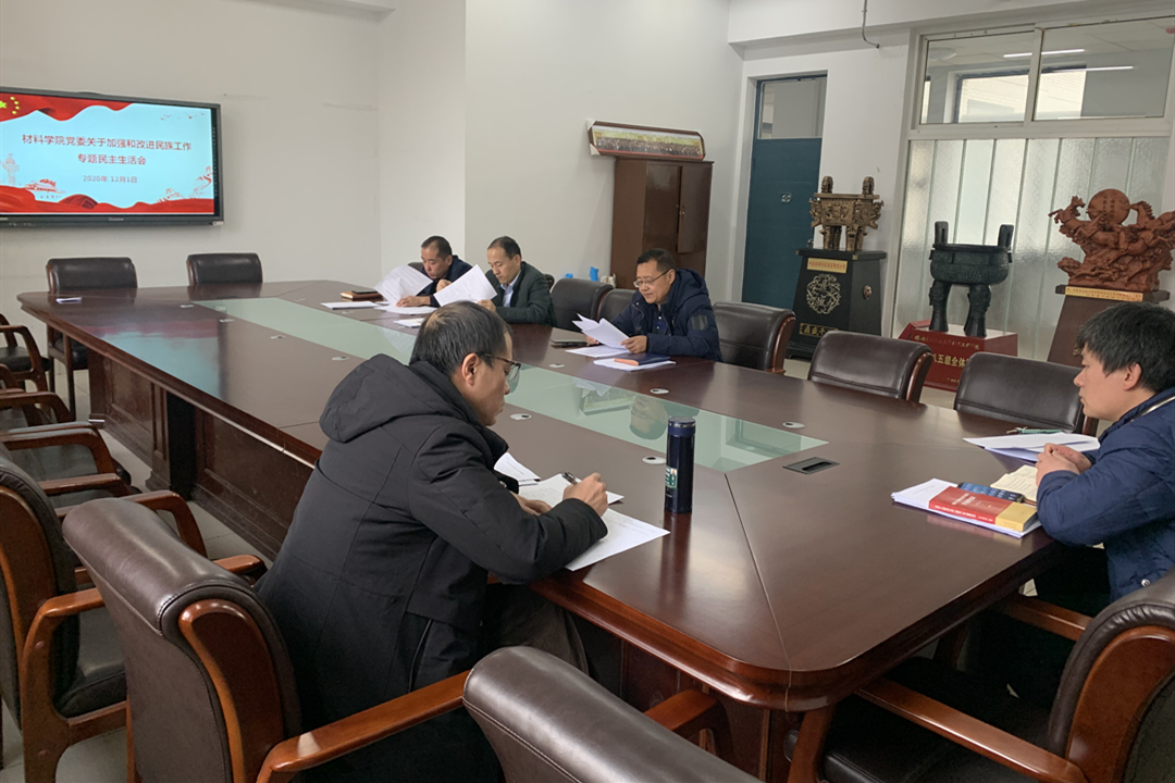 12月1日下午,材料科学与工程学院党委在新城校区工程技术楼403室召开加强和改进民族工作专题民主生活会。院党委书记白朴存主持会议,全体院领导、党委委员参会。