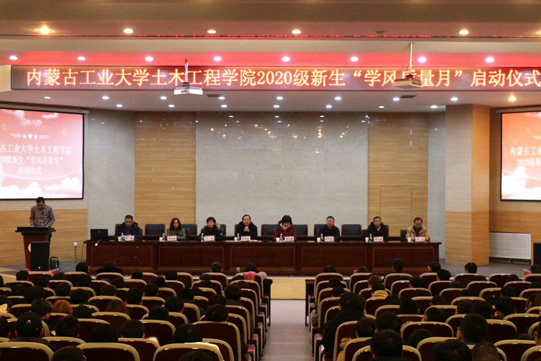 为进一步加强学院学风建设,在全院学生中形成积极进取、奋发向上的良好学习氛围,12月16日晚,土木工程学院在新城校区化工楼报告厅举办2020级新生“学风质量月”启动仪式。学校教务处处长李利军、教学促进与教师发展中心主任李冬梅、校党委学工部副部长李元涛及土木工程学院院领导、相关科室负责人、班主任代表、全体2020级新生共500多人参加仪式。