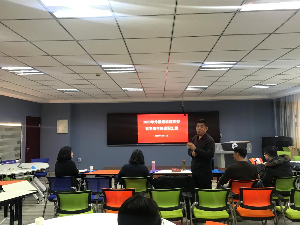 12月17日下午,外国语学院党委在金川校区电力大楼200会议室召开2020年度党支部书记抓基层党建述职评议考核会。学院领导班子、党委委员,各教工、学生党支部书记参加会议。会议由学院党委书记霍天瑞主持。