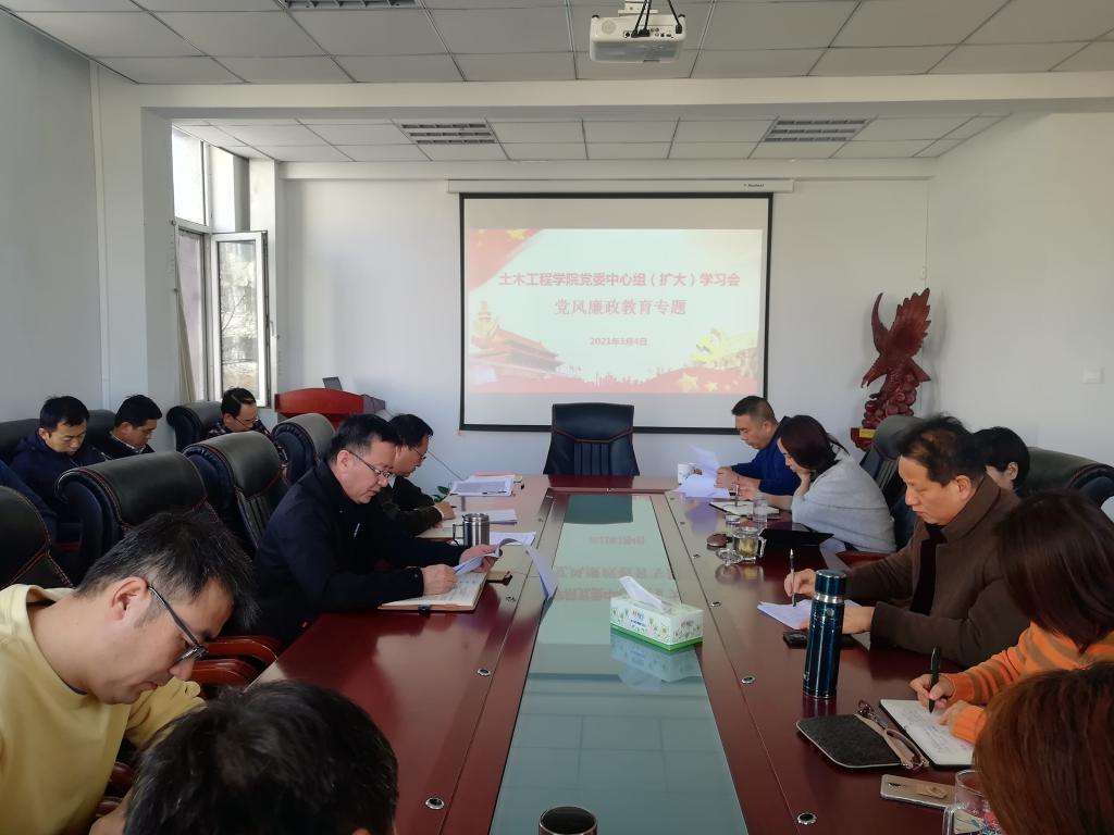 3月4日下午,土木工程学院党委中心组(扩大)在土木馆C座333会议室召开党风廉政教育专题学习会。党委书记那音巴雅尔主持会议。学院领导、党委委员、各教工党支部书记、科级干部共26人参加。