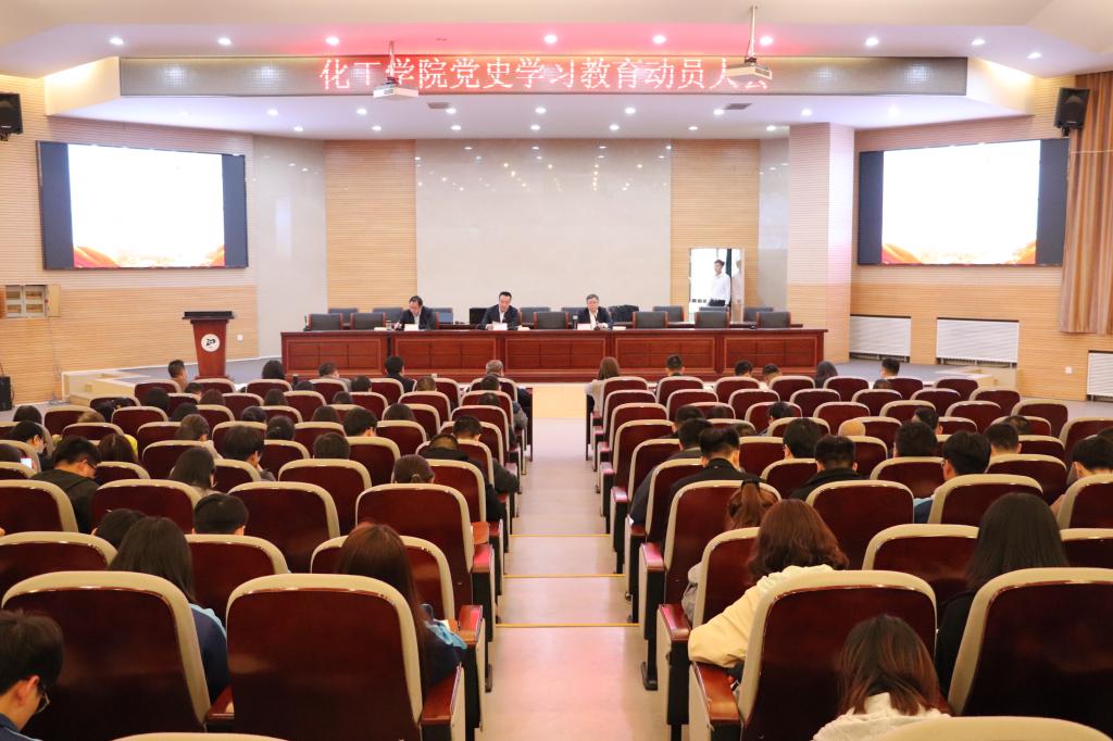 3月18日下午,化工学院在新城校区化工楼报告厅召开党史学习教育动员大会。学院全体教工党员、学生党员及2021年春季学期党员发展对象450余人参加。会议由党委委员、副院长洪海龙主持。