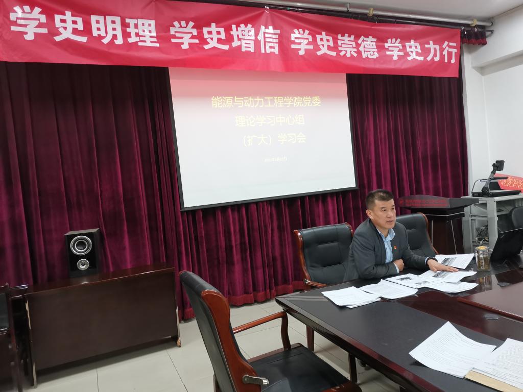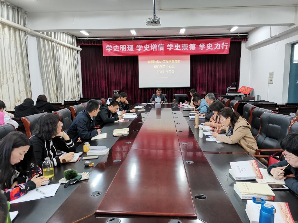 3月22日下午,能源与动力工程学院党委在新城校区工程技术楼A206会议室召开理论学习中心组(扩大)学习会。党委书记王振友主持会议。院领导、党委委员、院党政办负责人、各党支部书记、副书记、支部委员参加学习。