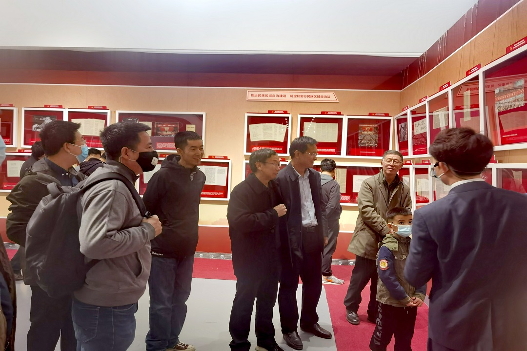 在讲解员的引导下,以时间为轴,通过818件档案、文献和图片,4个篇章18个部分的内容,全面、详实、生动展现了中国共产党成立以来解决民族问题和开展民族工作的奋进历程。特别是党的十八大以来,以习近平同志为核心的党中央在推进民族团结繁荣进步事业上所取得的辉煌成果极大地振奋了在场的党员们。
