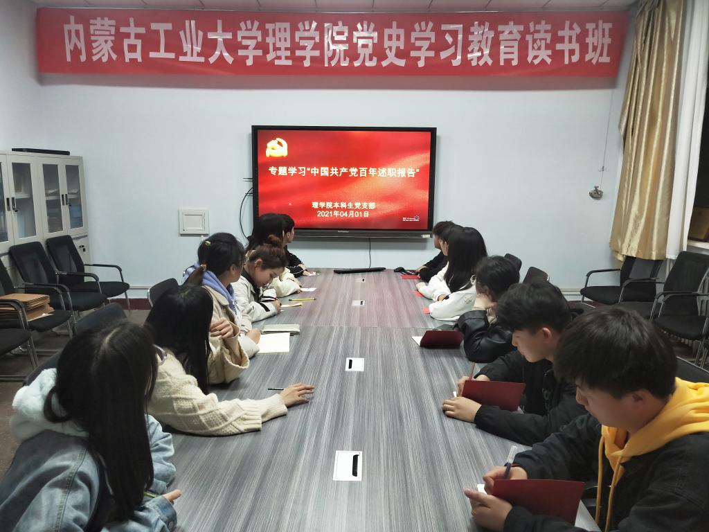 为认真学习习近平总书记在党史学习教育动员大会上的重要讲话精神,深入贯彻学校党委关于党史学习教育的统一部署,3月31日至4月2日,理学院党委理论学习中心组及所属八个党支部组织师生党员集中观看中国共产党百年述职报告视频。