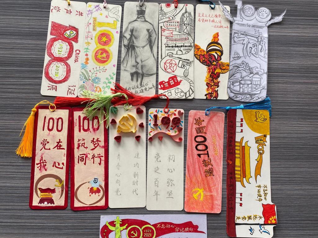 同学们制作的特色书签,将中国共产党的百年历史通过绘画的形式呈现出来,生动形象地刻画着这部壮观的历史长卷。通过此次党日活动,能够使党员们领悟更多的革命精神,感受更深的无我情怀,感悟更大的思想伟力,更加坚定党的领导地位,更加坚定心中的理想信念,更加坚定脚下的步伐,奋发有为,在传承接力中践行初心使命。
