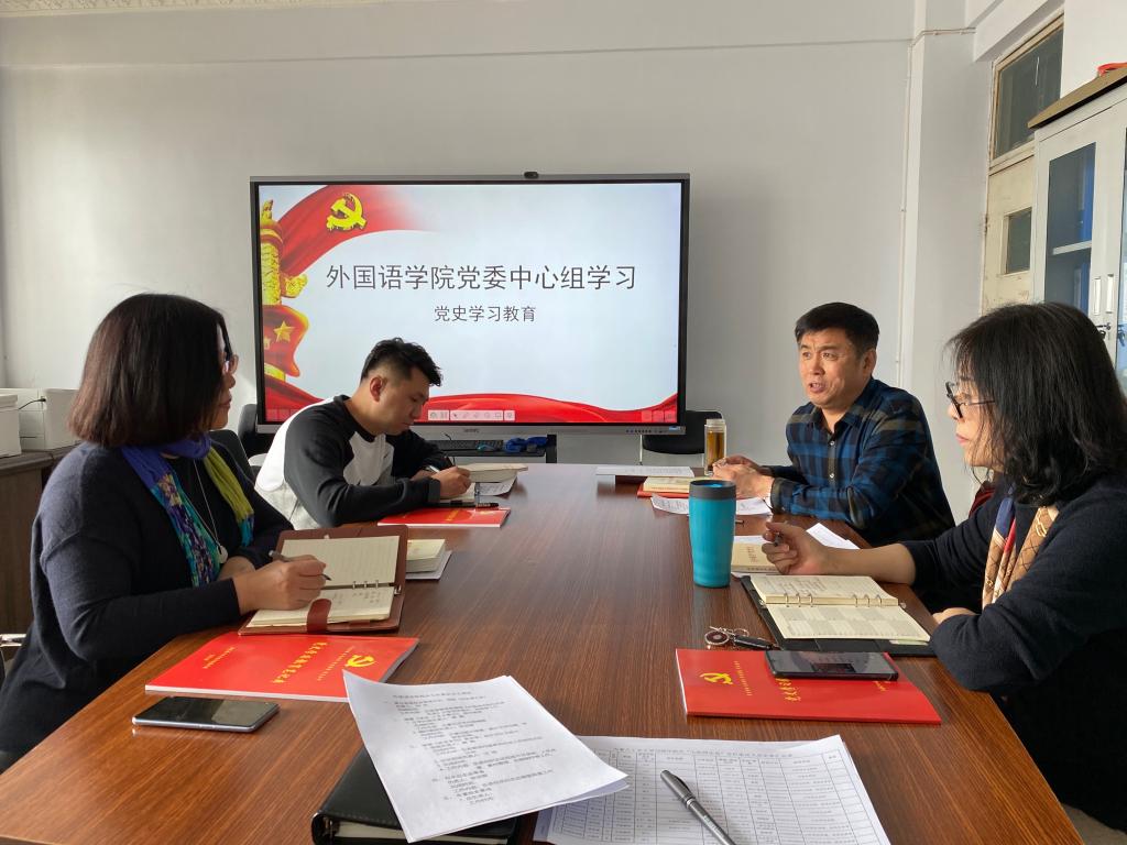 4月8日下午,外国语学院党委在金川校区电力大楼413室召开理论学习中心组专题学习会。外国语学院党委领导班子成员参加集体学习,学院党委书记霍天瑞主持。