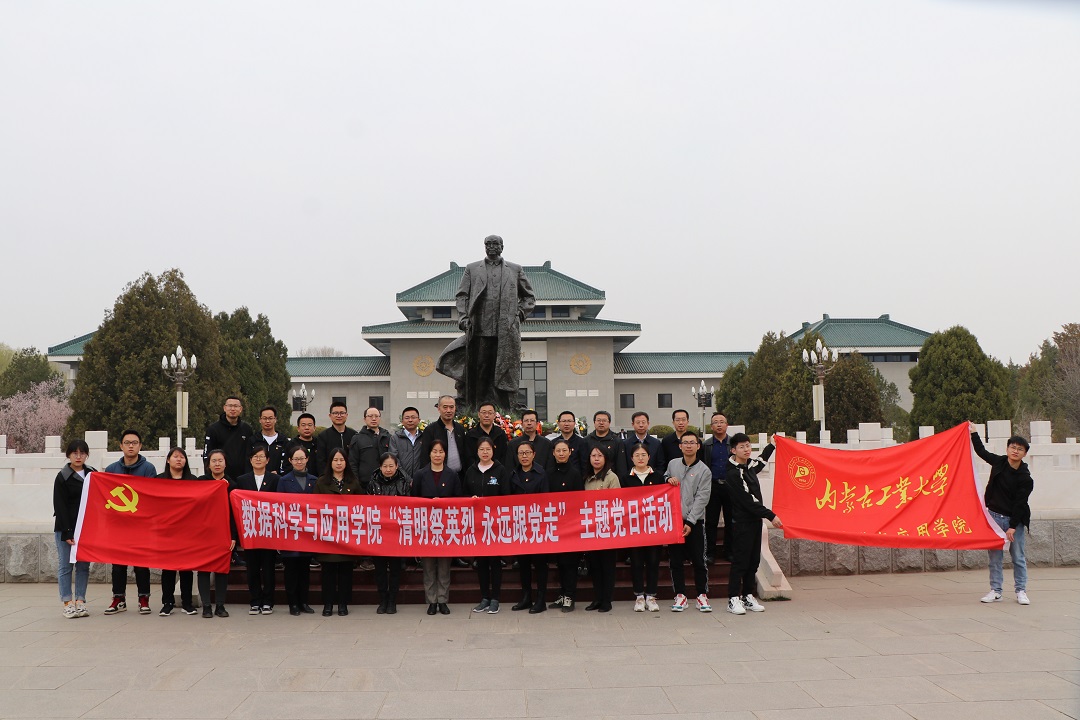 为深切缅怀革命英烈、传承红色基因,更好地把开展党史学习教育与弘扬优秀传统文化结合起来,4月10日,数据科学与应用学院在乌兰夫纪念馆开展了“清明祭英烈 永远跟党走”主题党日活动。学院全体教职工党员、学生党员代表30余人参加活动。学院党总支副书记、副院长郭鹏主持活动。