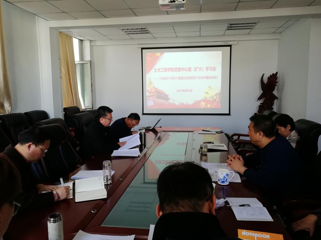 4月14日上午,土木工程学院党委在新城校区土木馆C座333会议室召开理论学习中心组2021年第四次(扩大)学习会。院党委书记那音巴雅尔主持会议。学院领导、各教工党支部书记、科级干部共20人参加。