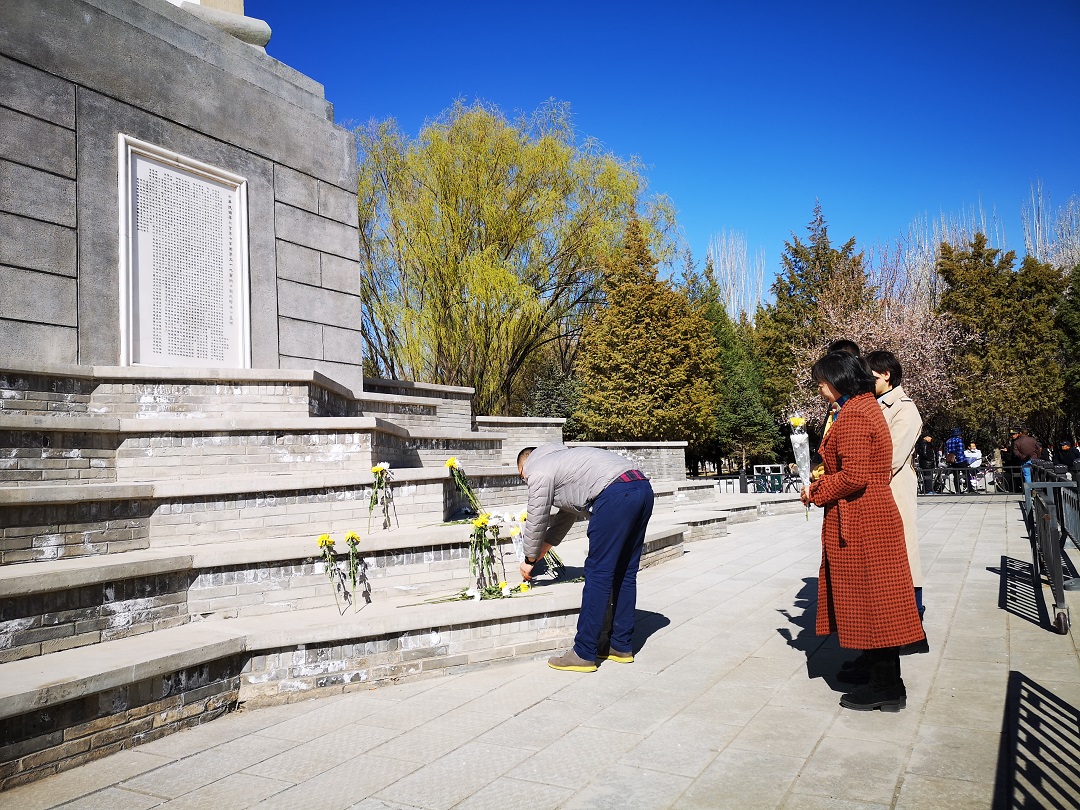 主题党日活动主要是线上和线下的祭扫活动。线上开展“网上祭英烈”活动,各支部党员登录中华英烈网,进行网上祭扫、鞠躬、献花、网上留言等活动,表达对革命英烈的缅怀和敬仰之情。线下组织支部党员分别到公主府公园华北军第五十九军抗日阵亡将士公墓和多松年烈士故居祭奠英烈,敬献鲜花,寄托哀思。
