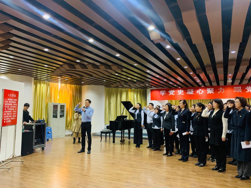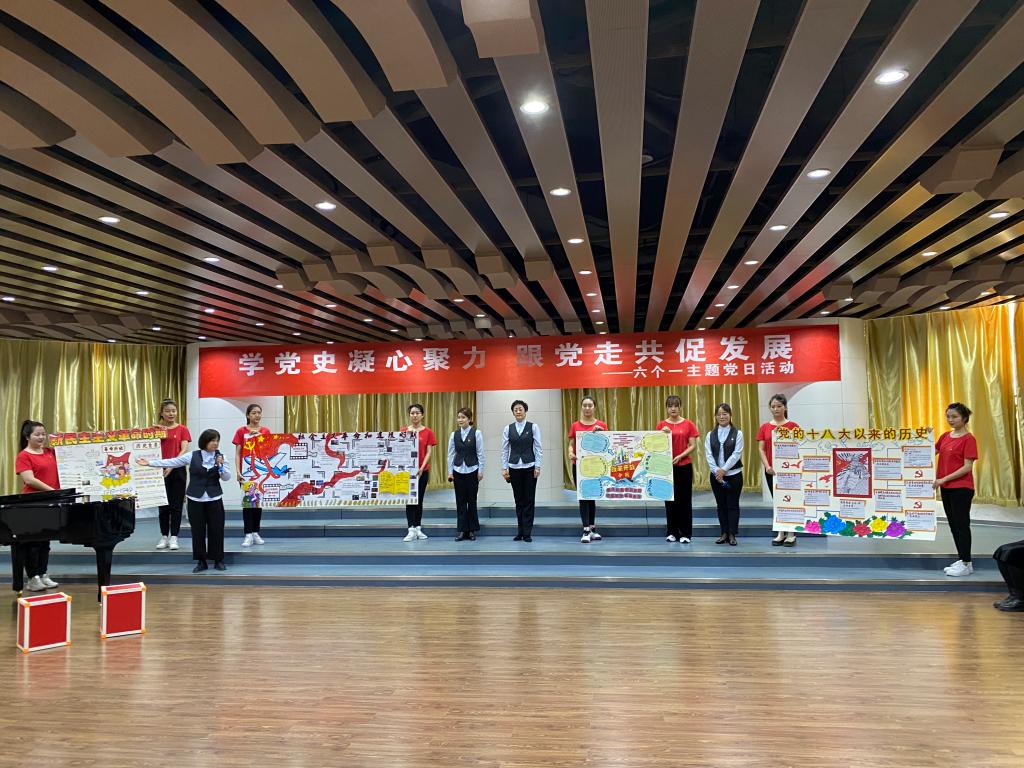 在青少年活动中心参观结束后,党员们共同在演唱大厅观看了中心附属艺术幼儿园表演的节目《童声向党,歌声嘹亮》,听老师们讲述了党史故事,观看了舞蹈部老师舞蹈表演的《赞歌》,并且一起学唱了红歌《不忘初心》,集体重温了入党誓词。双方将以此次活动为契机,借助座谈会、共学党史、志愿服务、劳动实践教育等特色活动,以共建促党建,以创新强党建。
