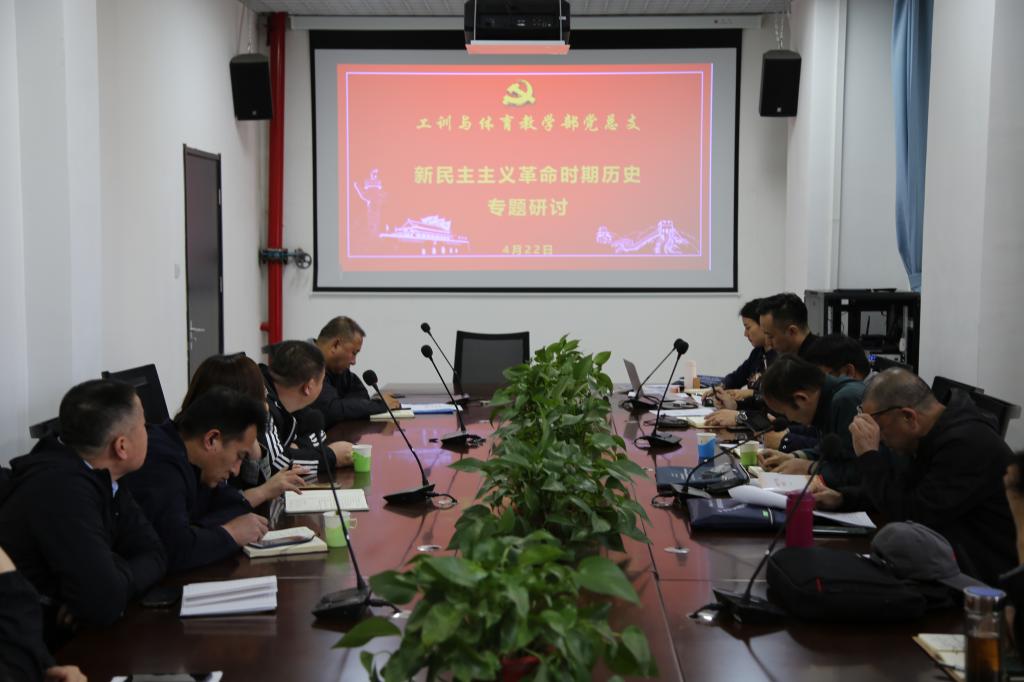 4月22日,工训与体育教学部党总支召开理论学习中心组(扩大)学习会,专题研讨新民主主义革命时期历史。党总支书记安雷主持研讨会,全体党总支委员、党支部书记、科级干部、分会主席参加。