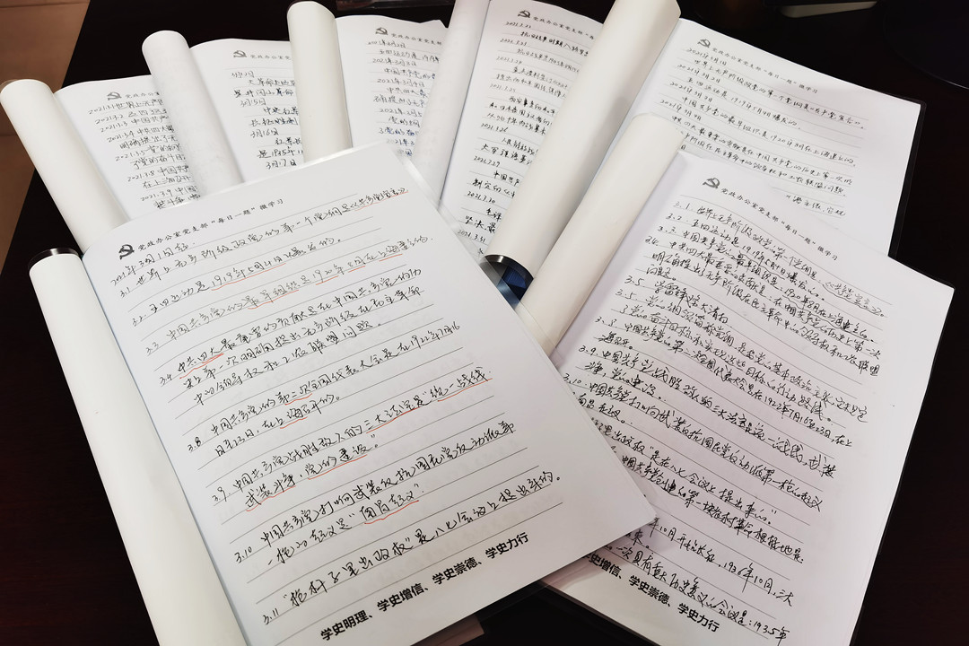 “每日一题学党史”由党支部自主设计编印统一的学习记录本,每天上午九时,党支部书记会在党支部微信群内发送一条微题目,全体党员每日将日期、题目、答案手写在记录本上,每30个学习日,党支部将组织党员巩固学习成果,进行阶段性总结交流。截止目前为止,“每日一题学党史”微课堂共发布党史知识42题。