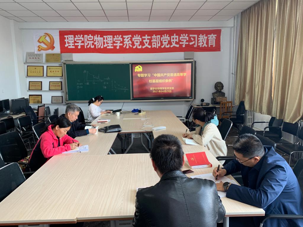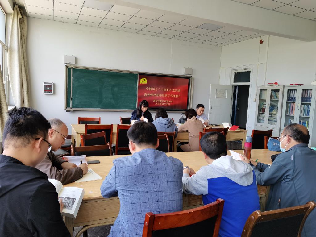 4月28日至29日下午,理学院党委理论学习中心组及所属各党支部,通过领学、自学、交流发言等形式,认真学习《中国共产党普通高等学校基层组织工作条例》,确保党员政治思想水平的进一步提高。