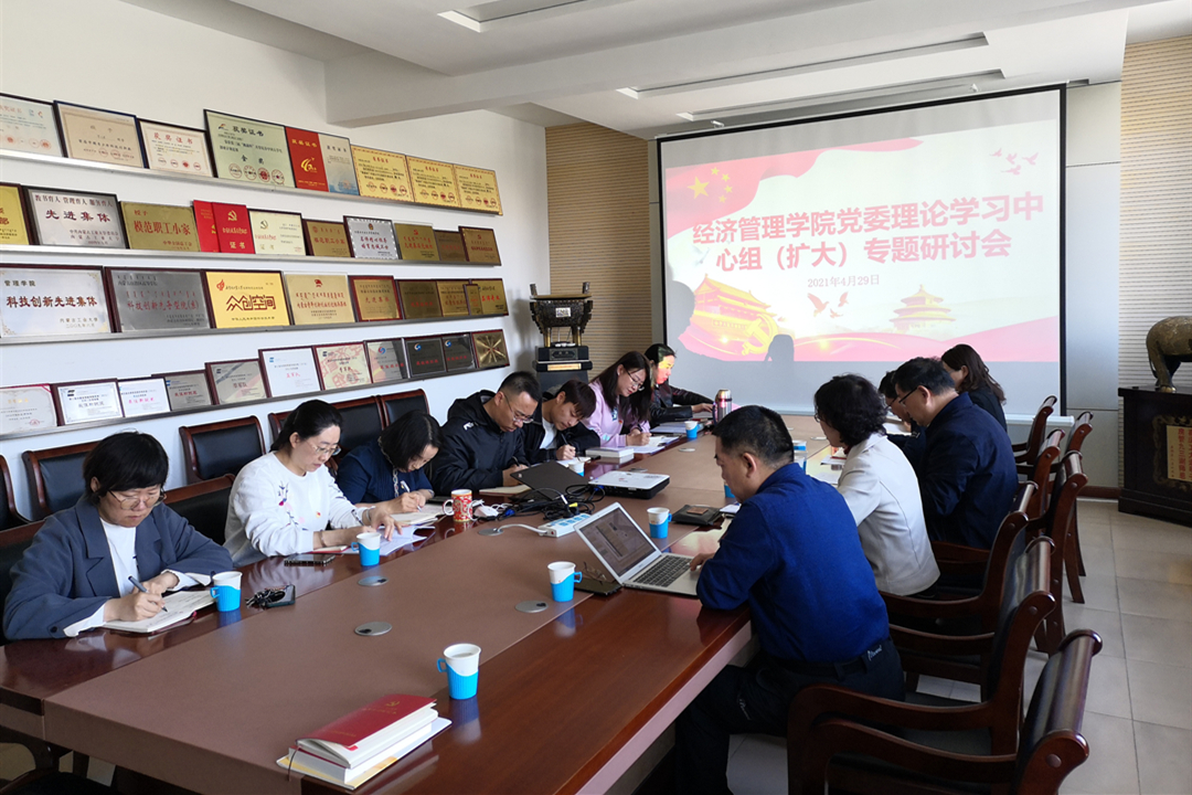 4月29日下午,经济管理学院党委理论学习中心组(扩大)在学院317会议室,围绕新民主主义革命时期历史进行专题学习研讨。学院党委委员、各党支部书记参加,院党委书记任慧主持会议。