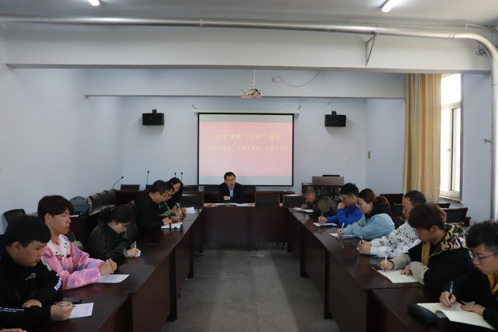 4月29日下午,航空学院党总支在学院306、311两个会议室同时召开“三问”师生调研座谈会。学院党总支书记郭凌峰、院长赵卫国分别主持会议。来自不同班级的42名学生代表以及学院各科室负责人、系主任参加会议。
