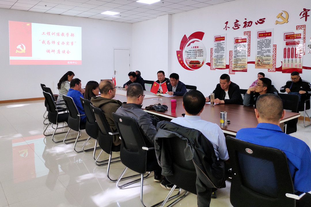 近日,为深入推进党史学习教育,积极落实“我为师生办实事”任务,工程训练教学部领导班子分别深入各教学中心、党支部、各科室进行座谈调研。