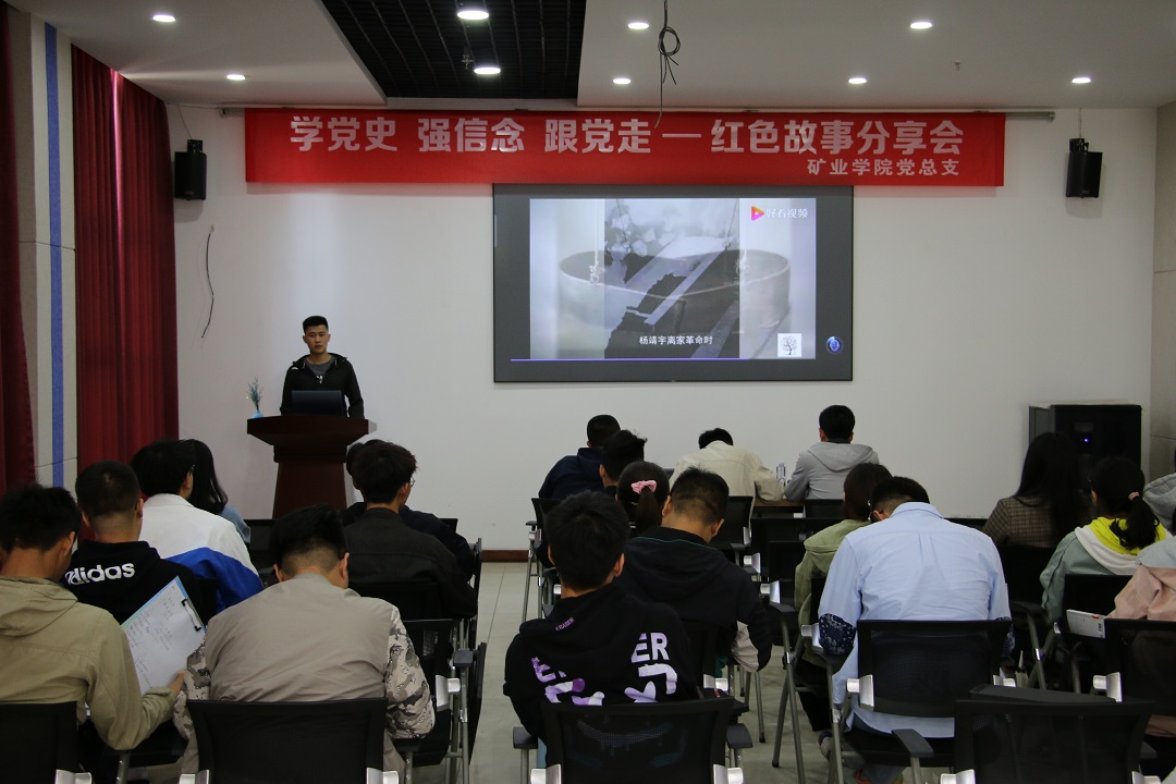为进一步深化党史学习教育,引导学生缅怀革命先辈,继承红色基因,迎接中国共产党成立100周年,5月8日上午,矿业学院党总支在金川校区举办“学党史 强信念 跟党走”红色故事分享会。党总支副书记、副院长薛振宙,学生党支部书记,团学办公室辅导员,学生党员,2021年第一期发展对象参加分享会。