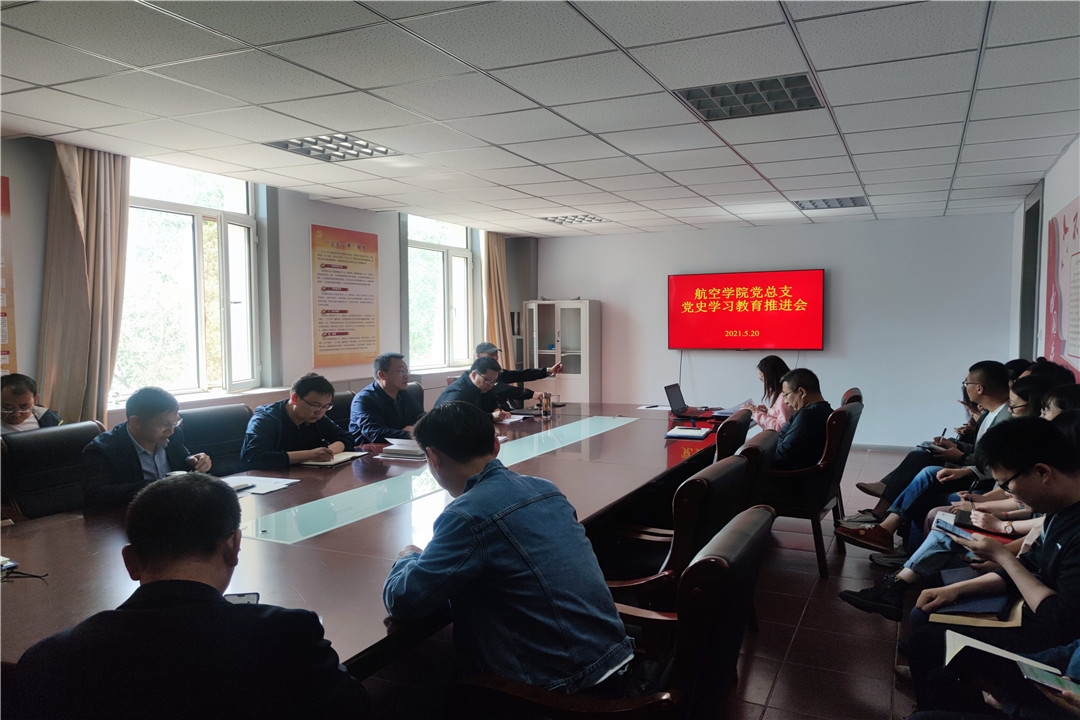 5月20日下午,航空学院党总支在学院三楼党员活动室召开党史学习教育推进会。全体教师参会。学院党总支书记郭凌峰主持会议。
