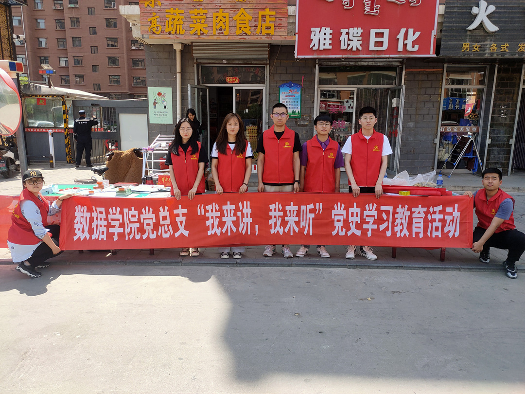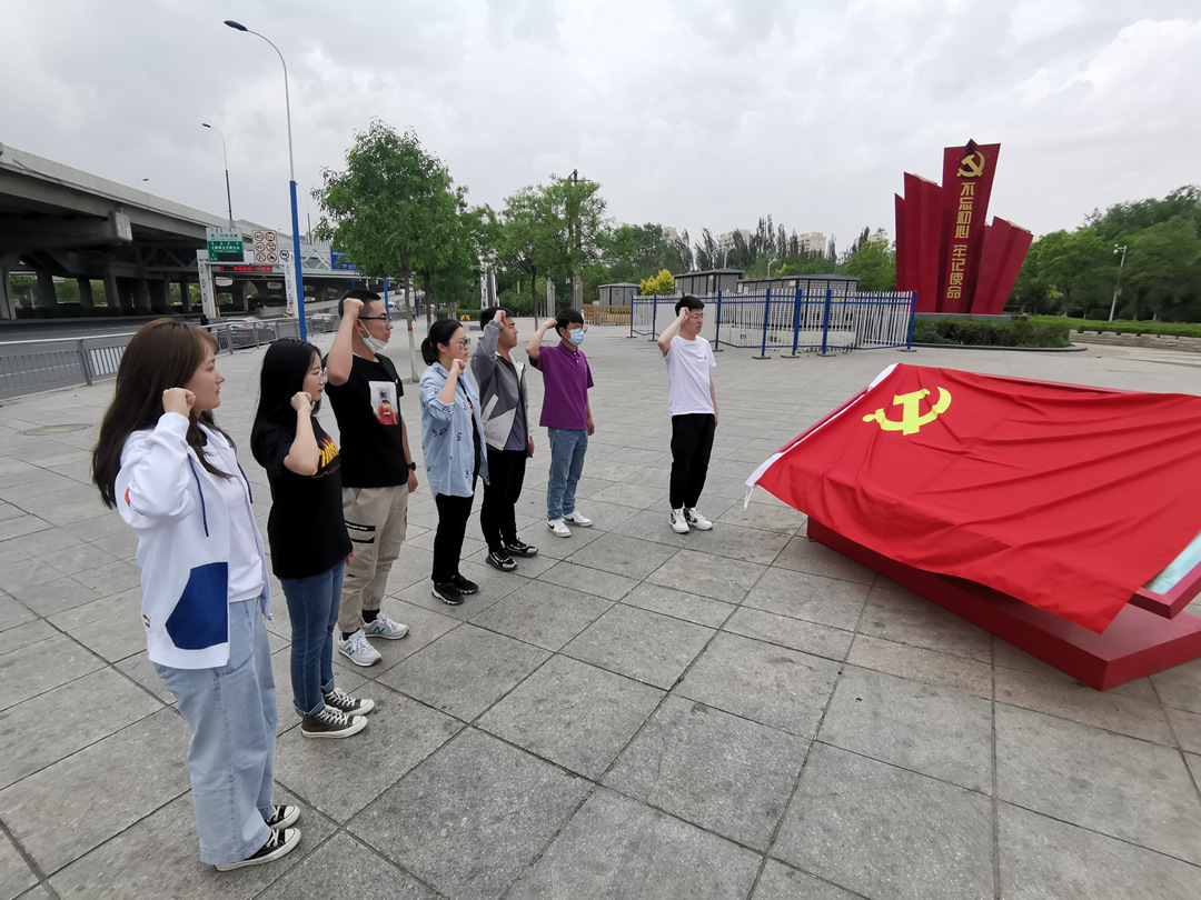 志愿活动结束后,学生党员们在玉泉区党建主题公园开展“我来讲,我来听”党史学习教育活动,并邀请呼和浩特信用管理中心党员朱弘宇同志为大家讲党史。随后,学院网络工程、信息与计算科学联合学生党支部原支部书记赵锦山同志领誓,党员们在党旗下重温了入党誓词。