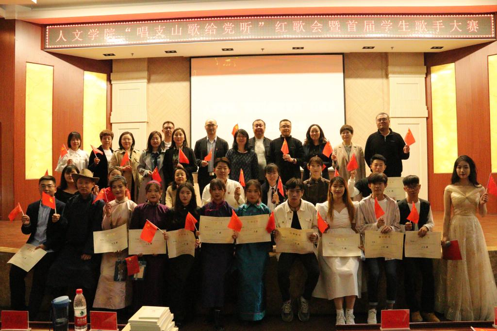 活动在全体参赛选手共唱《唱支山歌给党听》的歌声中拉开帷幕。经过紧张激烈的比赛,最终社工20级预科班阿拉木斯荣获一等奖;法学19-1班温迦祎、法学20-3班赛罕组合荣获二等奖;法学18-3班佟莹莹、社工20-2班郭庆、社工18-2班李朋洲荣获三等奖;社工19-3班都日思、社工19-2班张俊杰、法学18-1班贾琪、法学20级预科班戴明慧、法学20-3班安娜组合、法学20-3班特古力德尔、社工20-2班赵之旋荣获优秀奖。活动中,人文学院法学系教工党支部、社会工作系教工党支部、法学专业学生党支部、社会工作专业学生党支部和研究生党支部进行红歌拉唱,分别演唱了《没有共产党就没有新中国》《我和我的祖国》《团结就是力量》等经典红歌。现场气氛热烈,掌声雷动。活动在全体人员合唱《歌唱祖国》中落下帷幕。