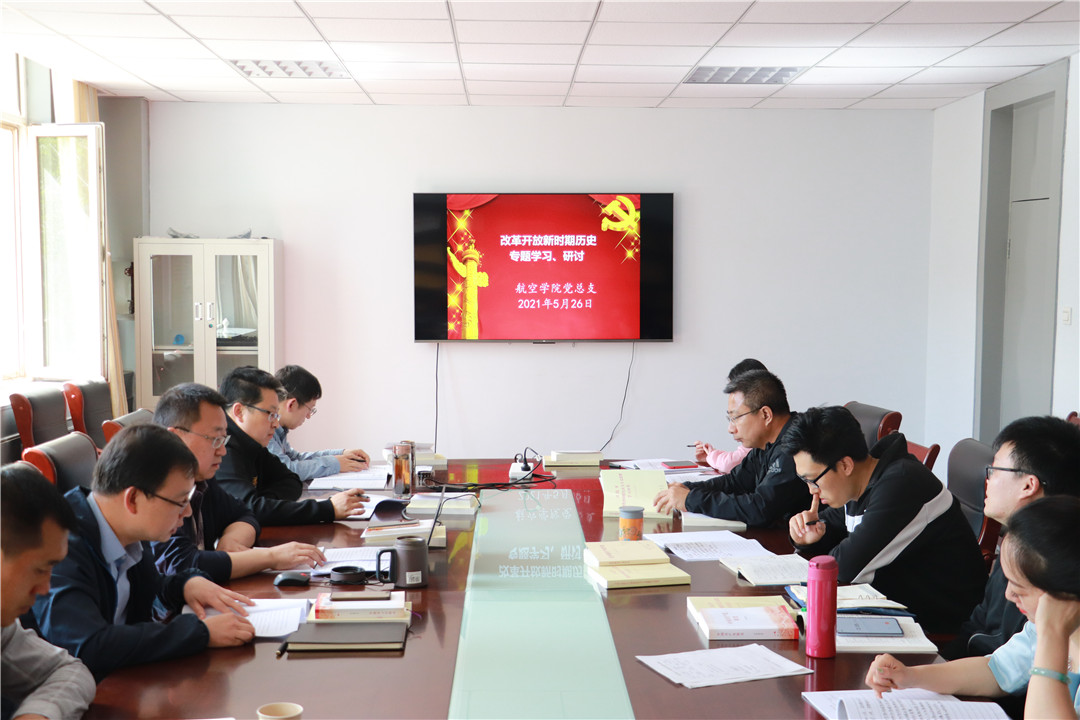 5月27日下午,航空学院党总支在学院党员活动室召开改革开放新时期专题研讨会。学院党总支委员、副高级以上职称教师党员、各党支部书记参会。学校督查指导组列席会议。党总支书记郭凌峰主持会议。
