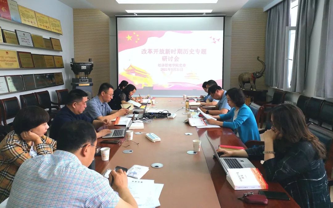 5月31日,经济管理学院党委理论学习中心组在学院317会议室召开改革开放新时期历史专题扩大学习研讨会。学院党委委员、各党支部书记参会,党委书记任慧主持。