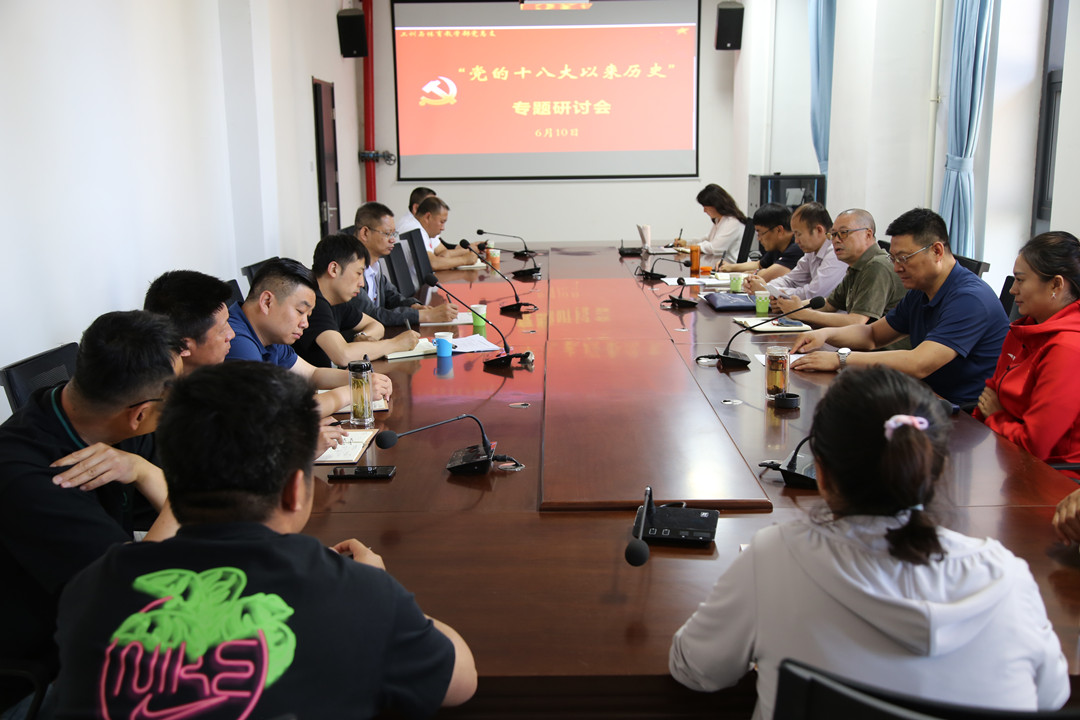 6月10日下午,工训与体育教学部党总支在新城校区卓越体育馆211会议室召开“党的十八大以来历史”专题研讨会。党总支书记安雷主持会议,全体党总支委员参会,学校党史学习教育督查指导组第二小组到会指导。