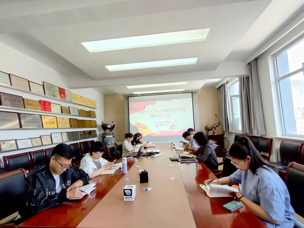 6月10日,经济管理学院党委理论学习中心组在317会议室召开党的十八大以来的历史专题学习会。学院党委书记任慧主持会议,党委委员、各党支部书记参会。
