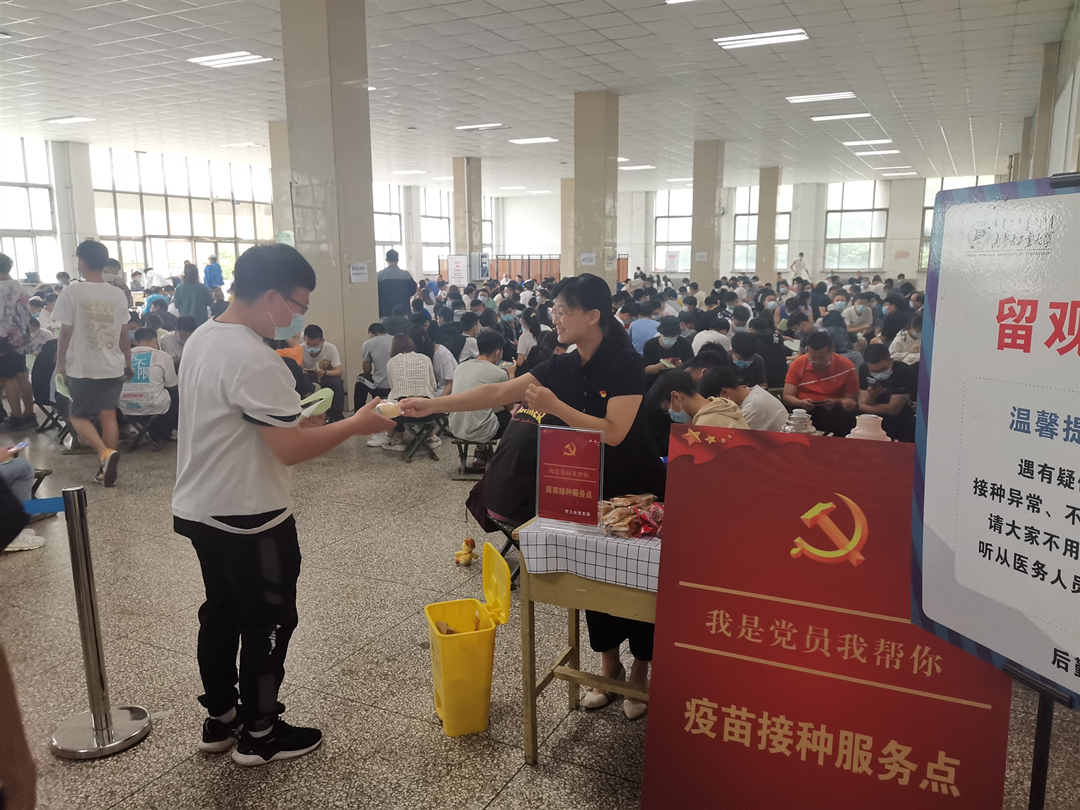 党员们负责接待指引,并为师生提供温暖服务。党员们关切询问学生们接种疫苗后的身体反映,为他们送去小食品、热水等。党员们严谨、认真、负责的表现,成为了疫苗接种现场一道亮丽的风景线。他们用爱心和耐心为疫苗接种工作有序开展提供了保障,营造了和谐、安心的接种环境,得到了师生的一致好评。