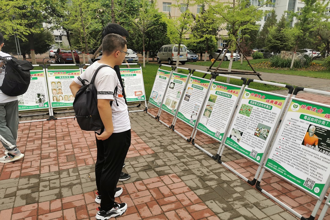 内蒙古芸公益协会志愿者们携带移动禁毒教育设备参与其中,共展出60种仿真毒品模型、10种人体器官对比模型、39块禁毒宣传展板。通过摆放禁毒知识展板、仿真模型,举办禁毒知识问答互动等方式,全方位、多角度、深层次地宣传毒品的危害性,分区域、分种类为前来参观的师生作了现场答疑,并对每一种仿真毒品模型作了详细讲解。整个活动共接待参观师生300余人次。