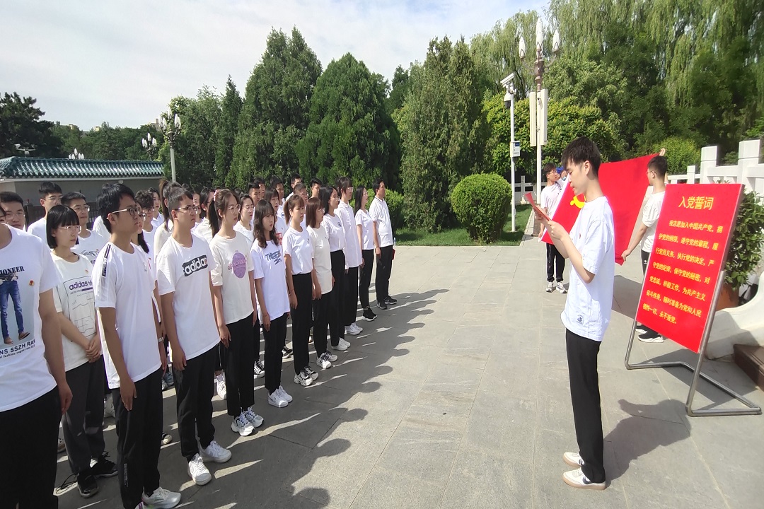 首先进行党员集体宣誓活动,薛振宙主持活动,郝东升领誓。全体党员在乌兰夫同志雕像前面向鲜艳的党旗进行了庄严宣誓,老党员重温了入党誓词,表达了为党的事业奋斗终生的决心。宣誓结束后,新发展预备党员陈浩代表全体新发展党员进行发言。