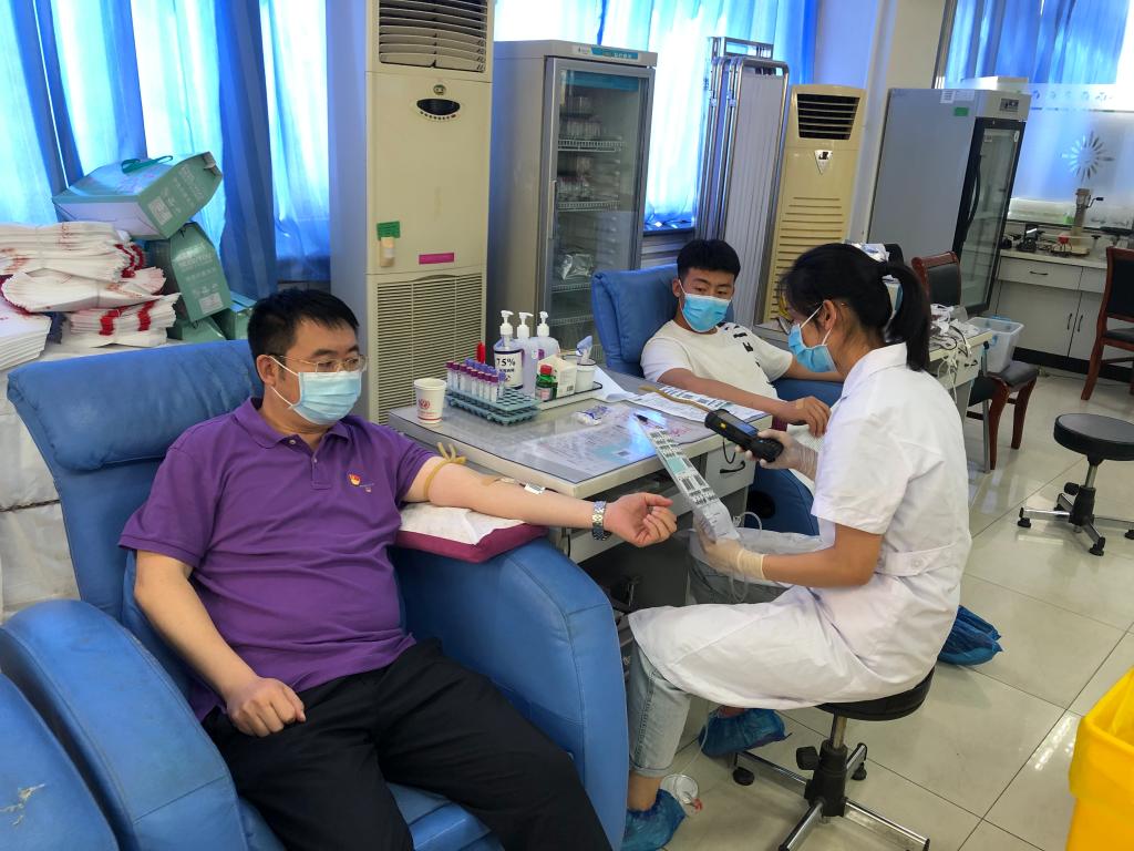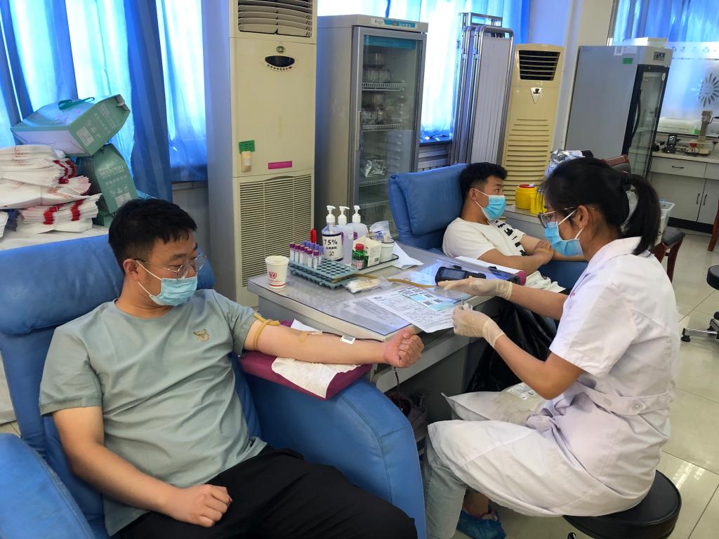 献血前,血液中心医务人员对大家进行了相关检查,最后被医务人员确认适合献血的同志参加了献血活动。
