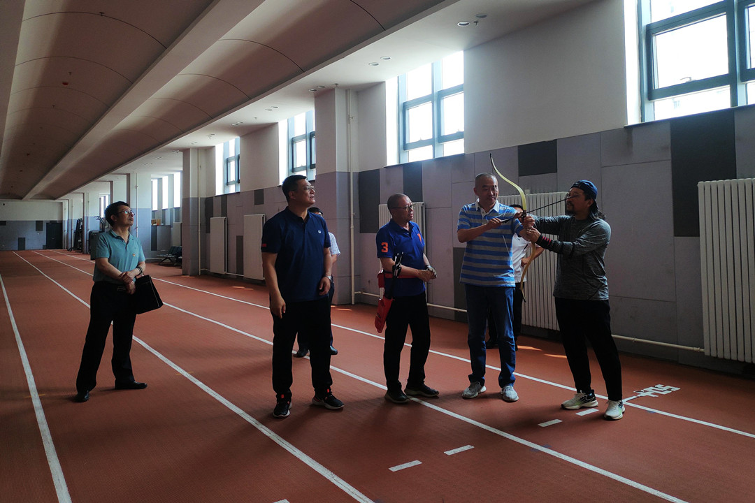 会后,数据科学与应用学院党委一行参观了体育教学部职工之家、多功能会议室及卓越体育馆各场馆,并饶有兴趣的来到射箭训练场地,在教练员千布拉格的指导下学习了解射箭技术,亲身体验射箭运动项目。